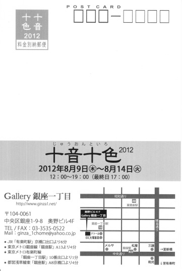 2012年8月9日(木)〜14日(火)12:00〜19:00まで(最終日17:00まで)